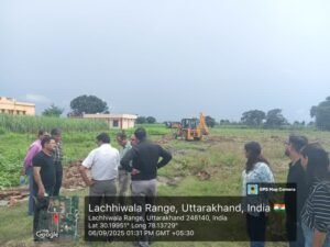 हरीद्वार रोड, निकट साईं मंदिर, देहरादून – गौतम जैहर, संदीप पाल व अन्य द्वारा लगभग 40 बीघा भूमि पर अवैध प्लॉटिंग को ध्वस्त किया गया।